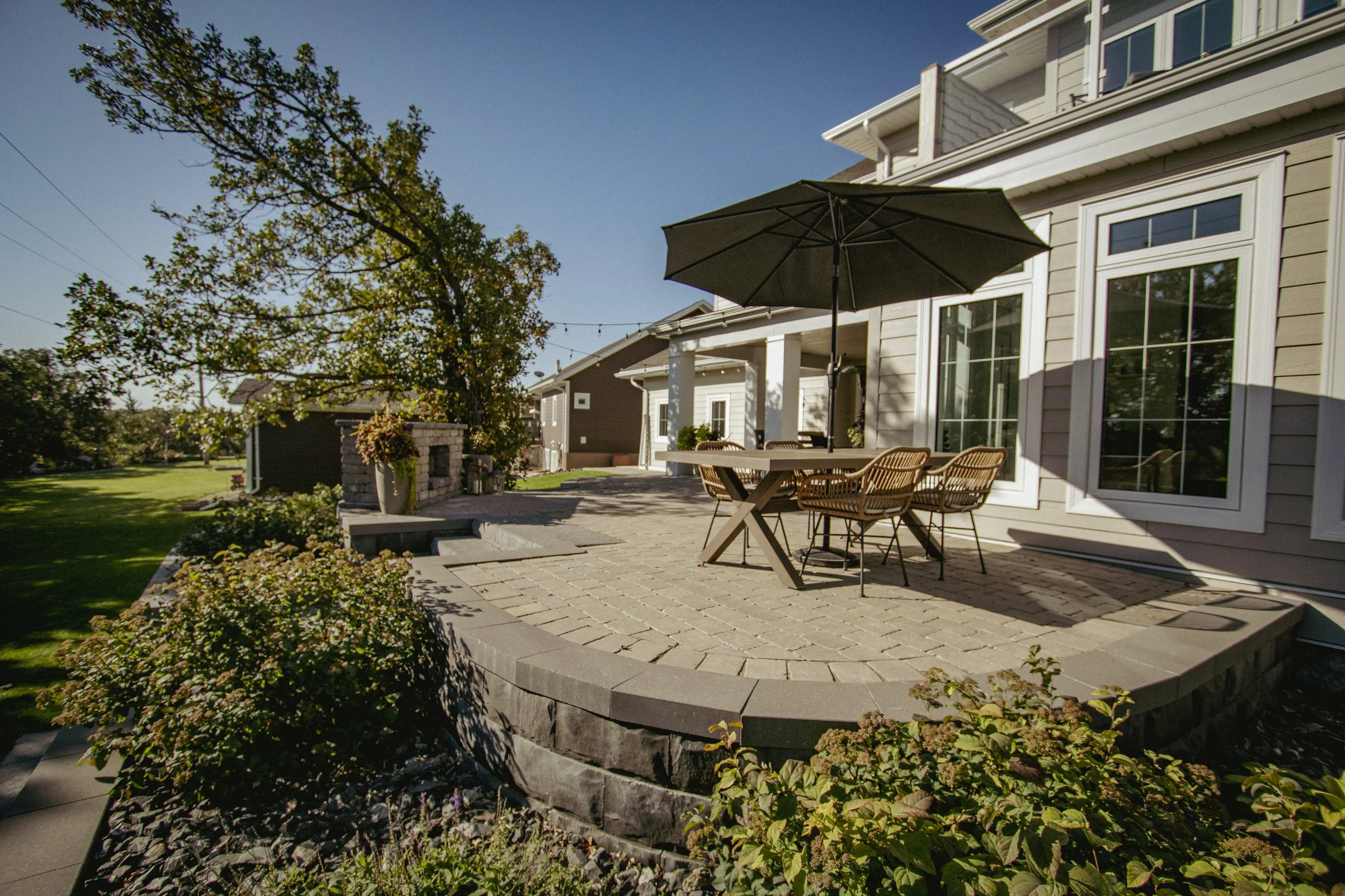 Retaining walls, walkways, steps, and structural landscape elements built to perform in Manitoba conditions.